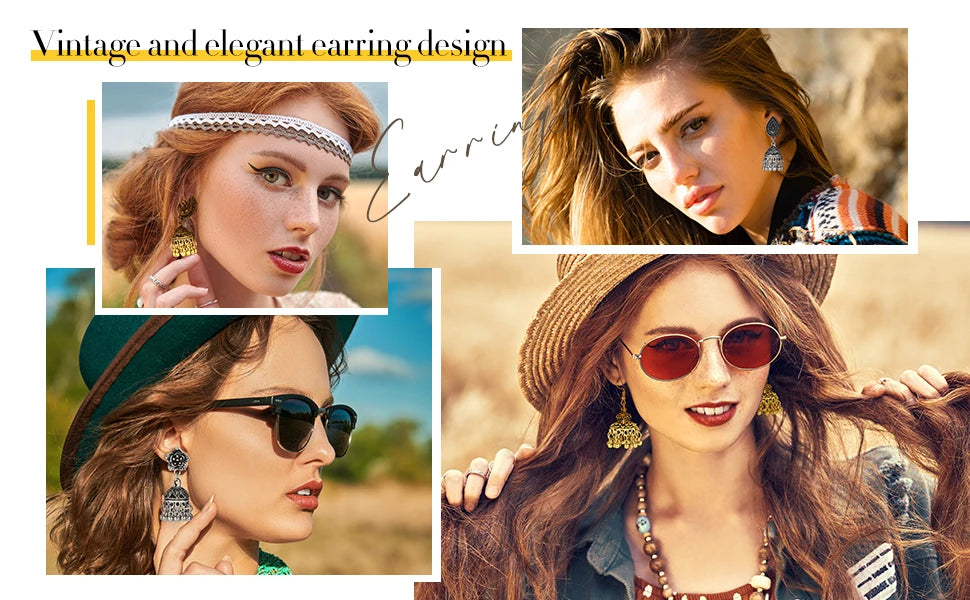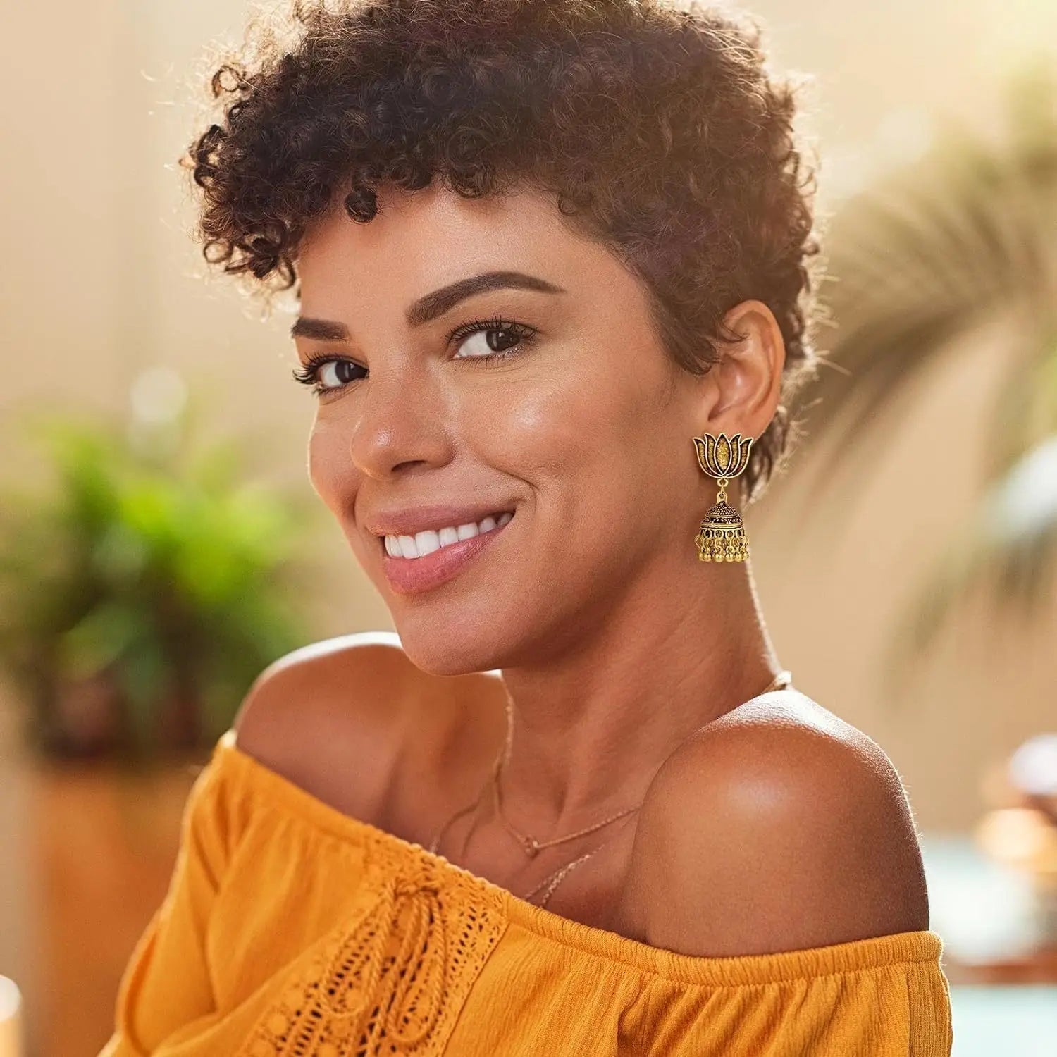 Add a touch of timeless elegance to your look with these stunning Indian ethnic-style Jhumki earrings. Featuring intricate alloy carvings and classic bell tassels, these earrings combine vintage charm with boho flair, making them perfect for parties, festivals, or everyday wear.
